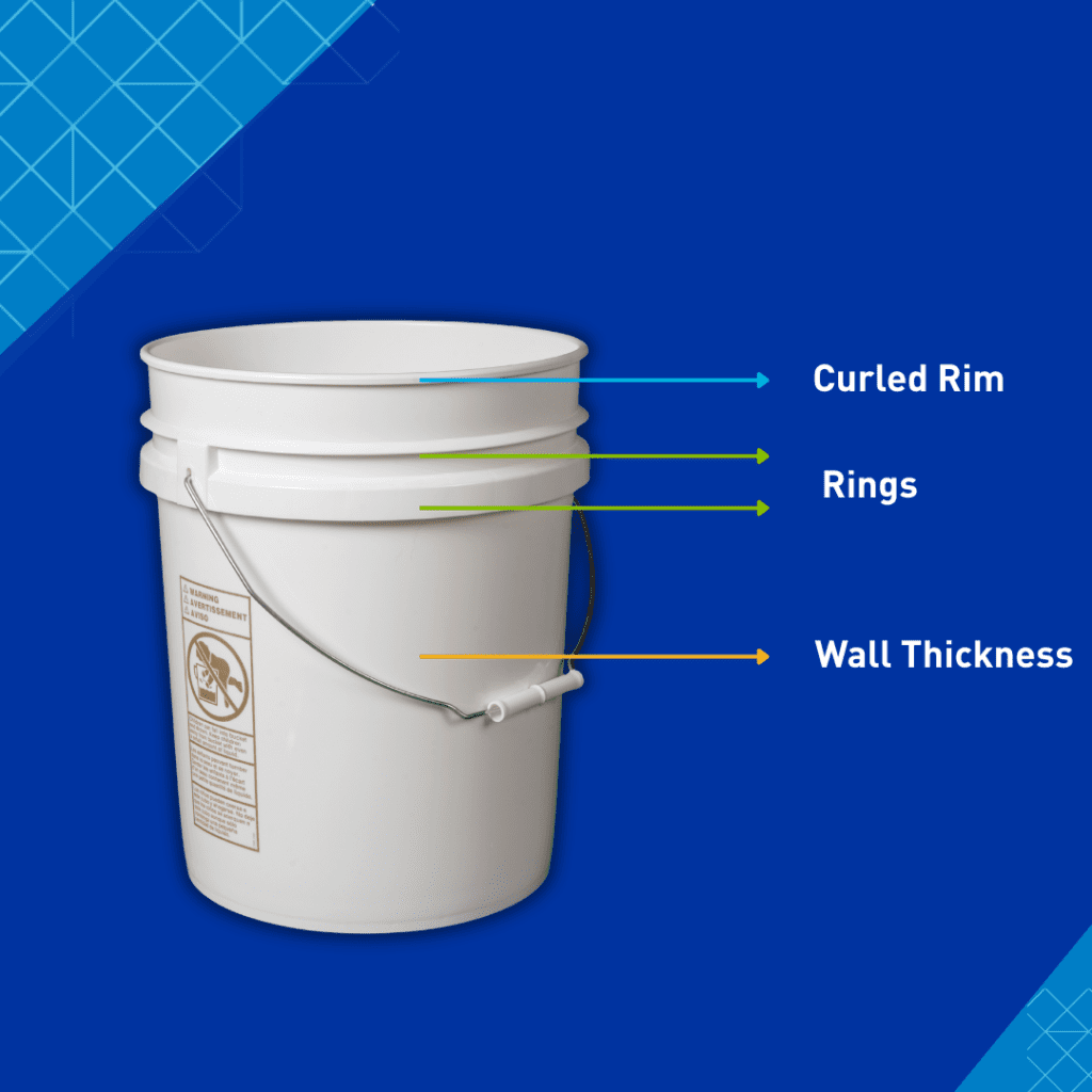 - The rings around the pail act like support beams, helping the pail keep its shape, prevent it from bulging when it’s full of product, and support stacking.