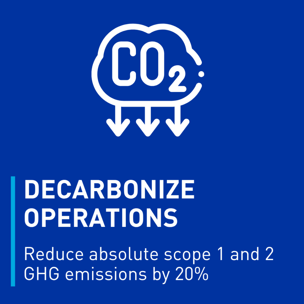 - Decarbonizing Operations: We are on a path to reduce our absolute Scope 1 and 2 GHG emissions by 20% by 2030—a goal we are already making significant strides toward.