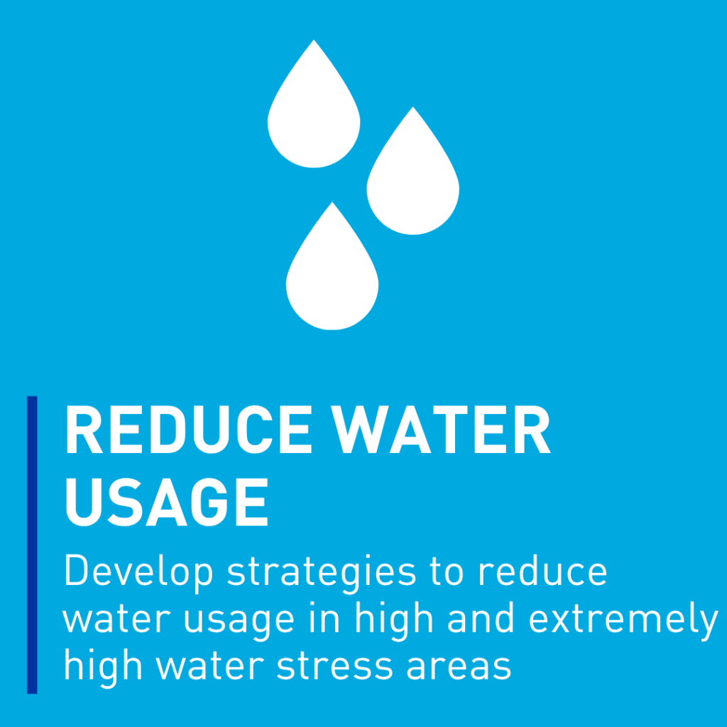 - Reducing Water Usage: We are developing strategies to reduce water usage at our facilities located in high and extremely high water stress areas.
