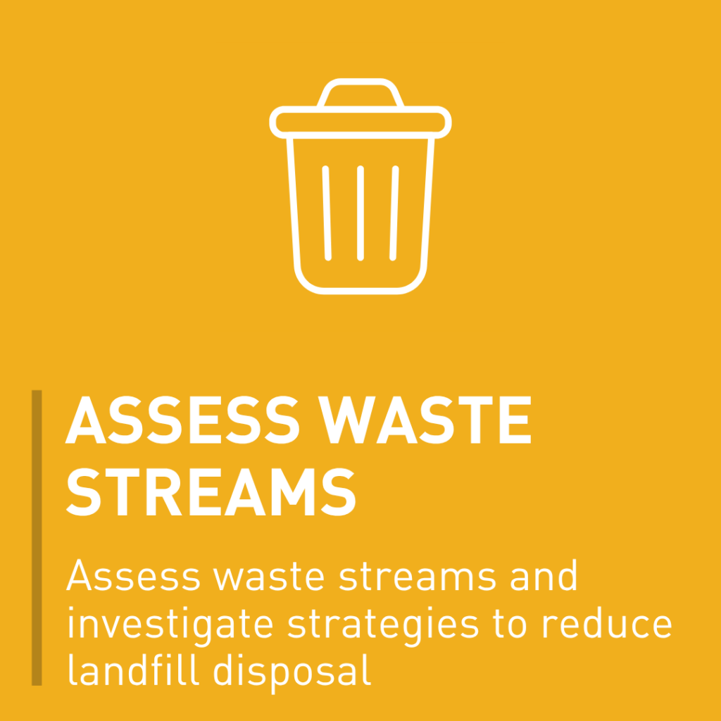 - Assessing waste streams: We are assessing waste streams and investigating strategies to reduce landfill disposal of waste.